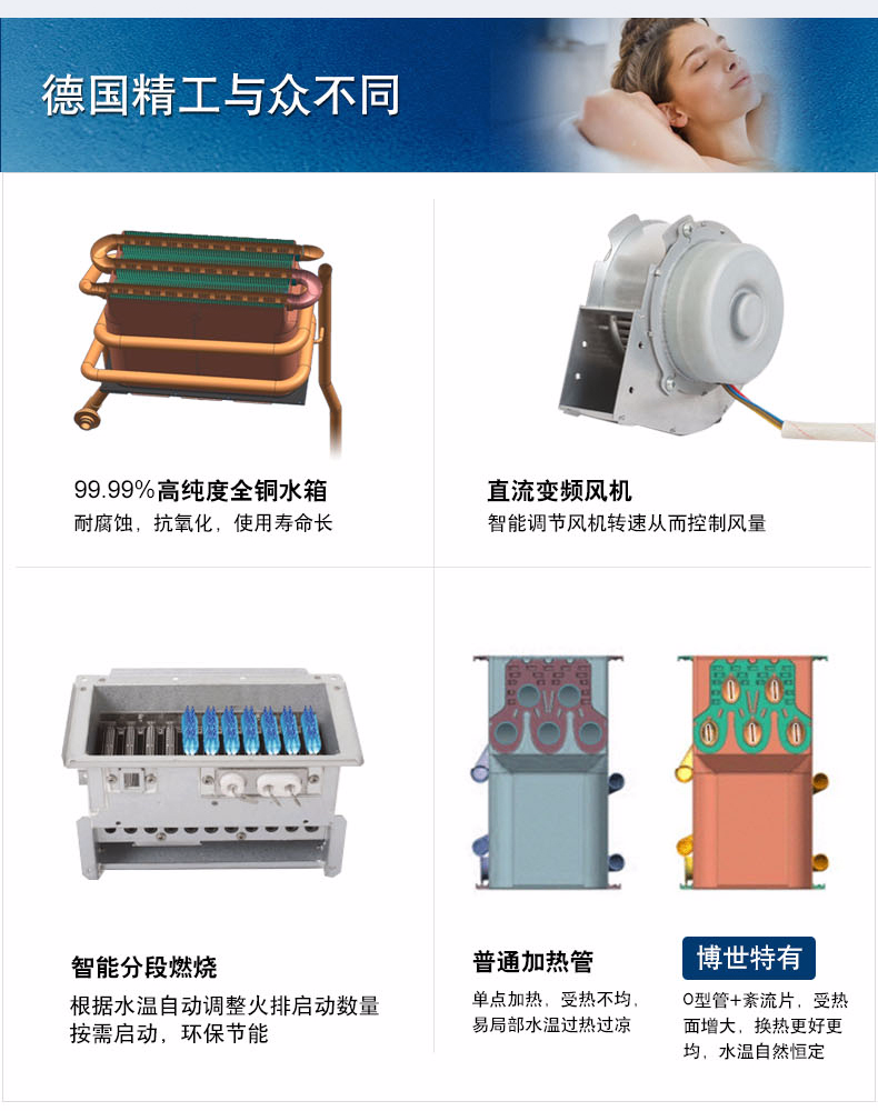 集先進(jìn)的冷凝技術(shù)和智能恒溫為一體,通過二次熱交換器,充分吸收高溫?zé)煔庵械氖S酂崃浚摕岵糠郑﹣眍A(yù)熱冷水,再通過主熱交換器,實(shí)現(xiàn)熱效率達(dá)100%以上。