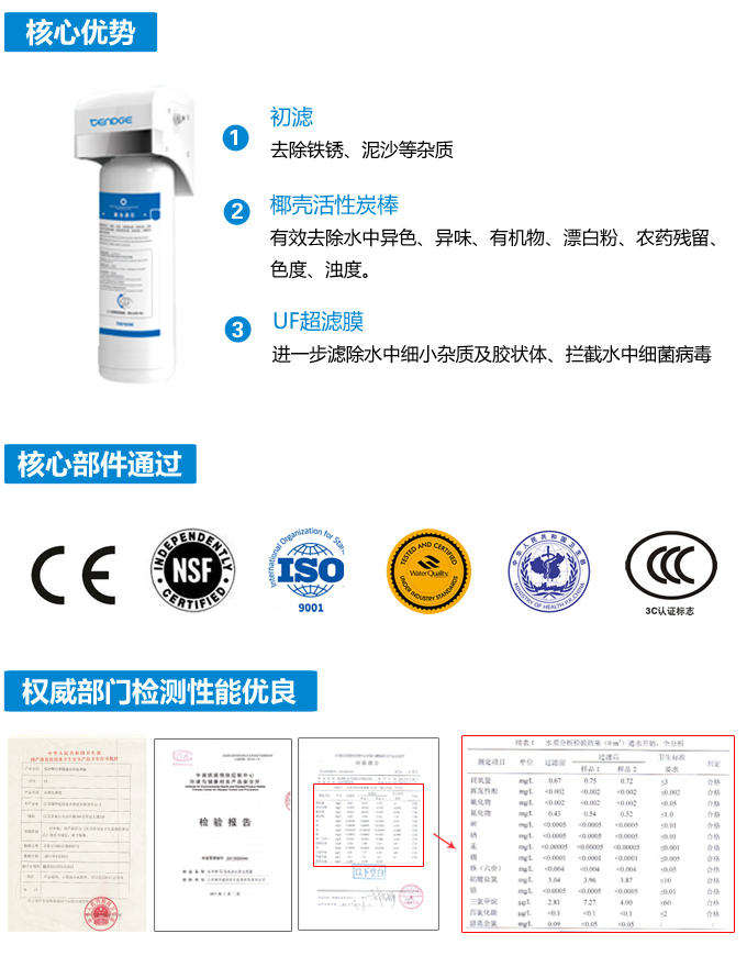 有效去除水中的異色、異味、余氯、細菌病毒等;同時保留對人體有益的礦物質。可用于燒飯、燒湯、喝水、洗水果等。