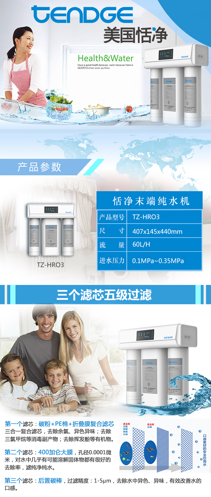 恬凈家用純水機讓家中的飲用水更健康、更安全、更衛生。水燒開再也不會結垢,口感甘甜,綿柔。能夠去除水中所有有毒氣體及重金屬全部去除,使用范圍更廣泛。飲用、淘米、洗菜、煲湯、煮飯均可用高品質的直飲水。
